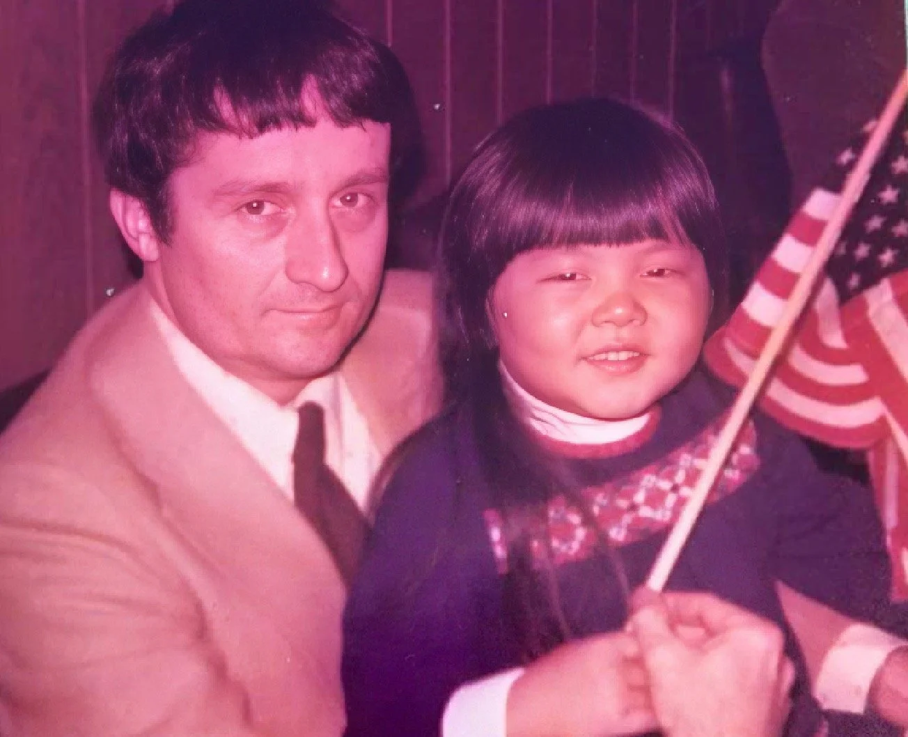 Scanned photo of my father and I on my Naturalization Day (1976).